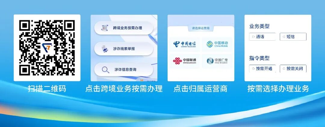 如果您也有遇到过这些困扰,别担心,信息通信行业反诈中心联合四家基础电信企业,重磅升级反诈公众服务平台,全新上线“跨境业务按需办理”功能,共筑跨境反诈安全防线。